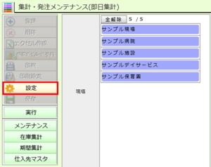 ①集計・発注メンテナンス(即日集計)画面の[設定]をクリックすると、