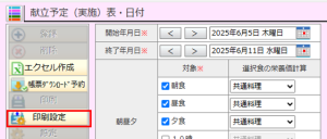 メニュー:献立関連>献立表1>献立予定(実施)表・日付
