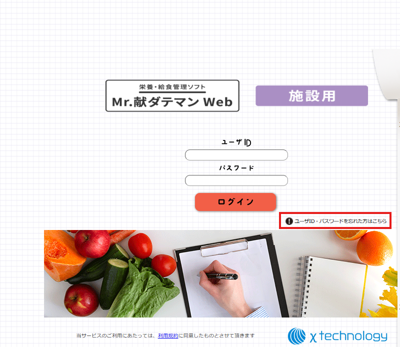 ①ログイン画面から[ユーザID・パスワードを忘れた方はこちら]をクリックします。
