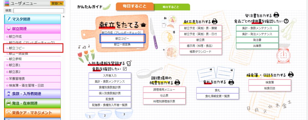 ユーザーメニュー:献立関連>献立作成>献立コピー