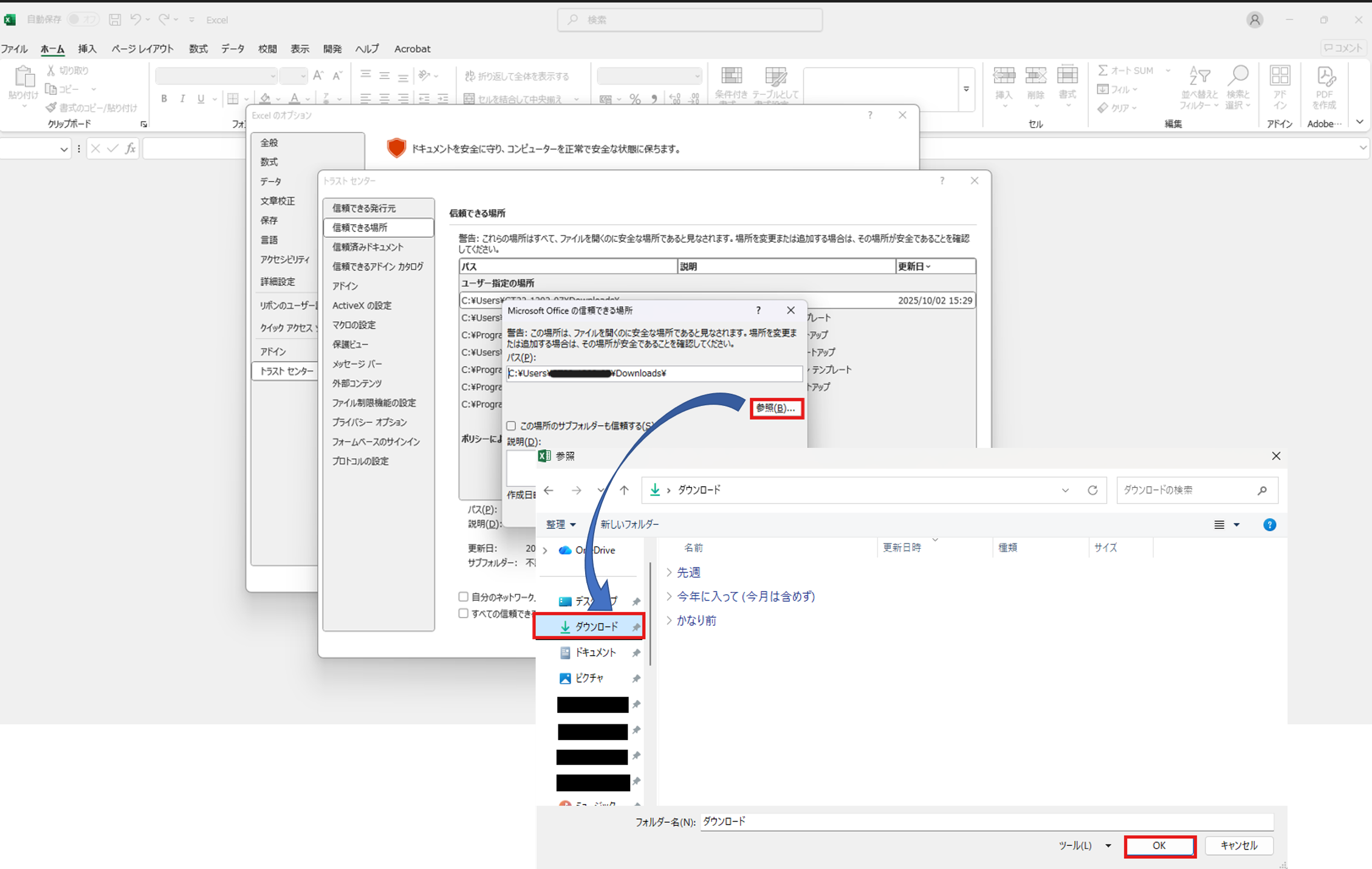 ⑥ 必要に応じて「この場所のサブフォルダーも信頼する」にチェックを入れると、より柔軟に運用できます。