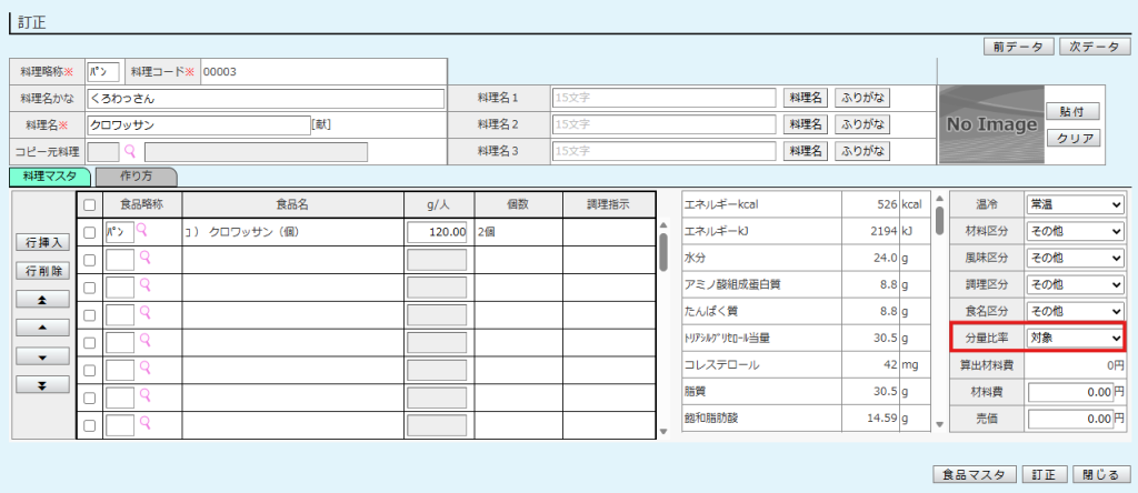 対象外料理とは、料理マスタ>分量比率が【対象外】になっている料理を指します。
