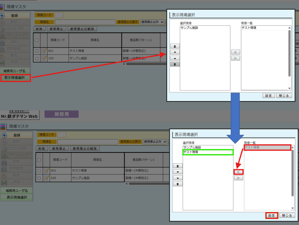 上記設定後、現場の切替が可能になったかご確認をお願いいたします。