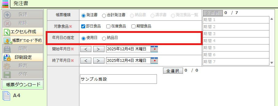 発注書をエクセル作成する際の使用日・納品日の選択が誤っている可能性がございます。