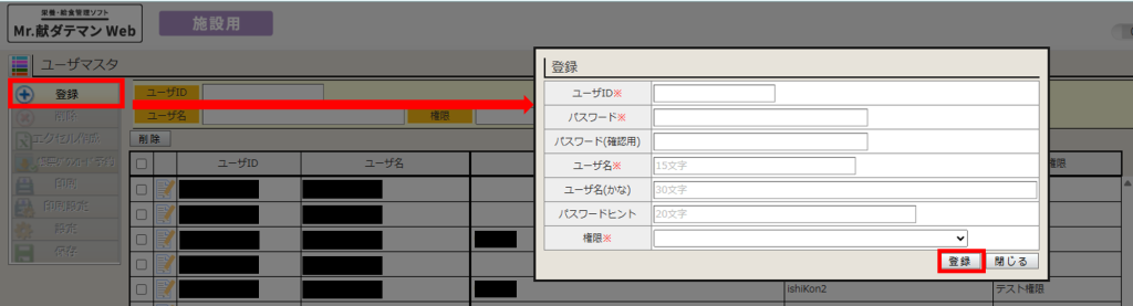 ユーザメニュー:データ管理>設定>ユーザマスタ