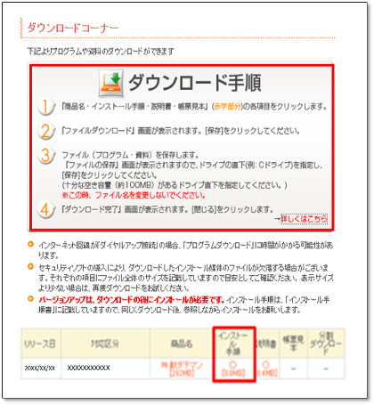 インストール手順 : ダウンロードコーナーからダウンロードするインストール手順書